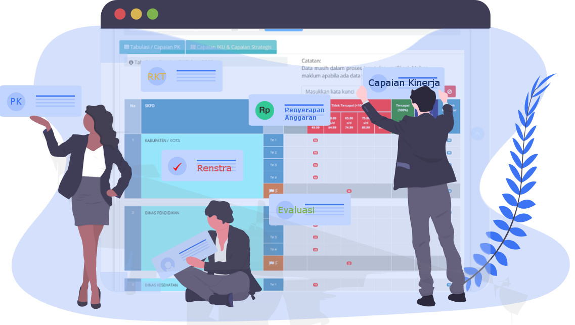 Untuk melihat kinerja perangkat daerah dalam bentuk tabulasi dengan indikator warna. Halaman ini terbuka untuk publik.